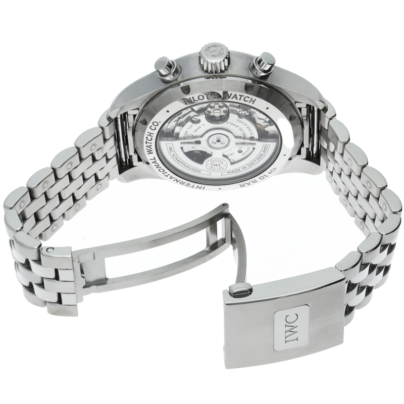 IWC伝統のパイロットウォッチ・クロノグラフです。日付表示は高度計をイメージしたデザインとなり、コクピットを彷彿とさせる演出がなされています。46時間パワーリザーブの自社開発キャリバー69385を搭載。高級クロノの代名詞ともいえる伝統的なコラムホイール式クロノグラフで、ゼンマイを効率的に巻き上げるラチェット式両方向巻き上げシステムを搭載した8振動ムーブメントです。