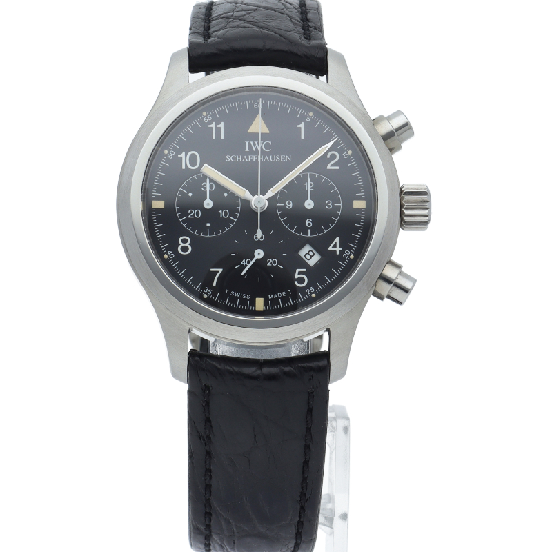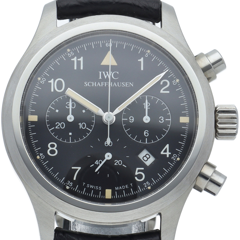 IWCの人気パイロットウォッチ「フリーガー クロノグラフ」。このモデルは既に生産が終了となりましたが、根強い人気があり、機能性と実用性を兼ね備えた1本。