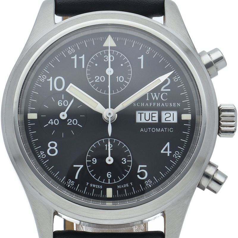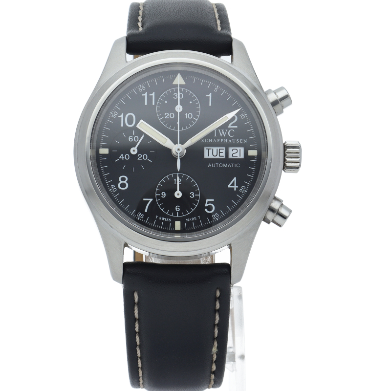 IWCの人気パイロットウォッチ「フリーガー クロノグラフ」。このモデルは既に生産が終了となりましたが、根強い人気があり、機能性と実用性を兼ね備えた1本。