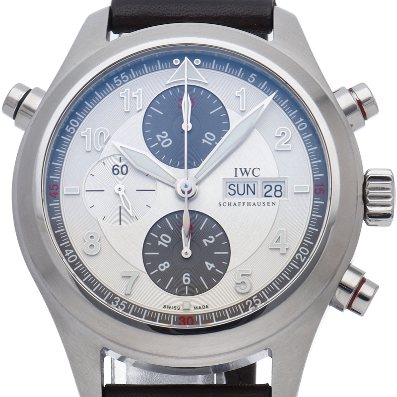 IWCの人気シリーズに、スプリットセコンド機能が加わった「スピットファイア・ダブルクロノグラフ」。人気を博すドッペルクロノグラフの継承を受け継ぎ、クロノグラフにはスプリットセコンド機能も付いております。