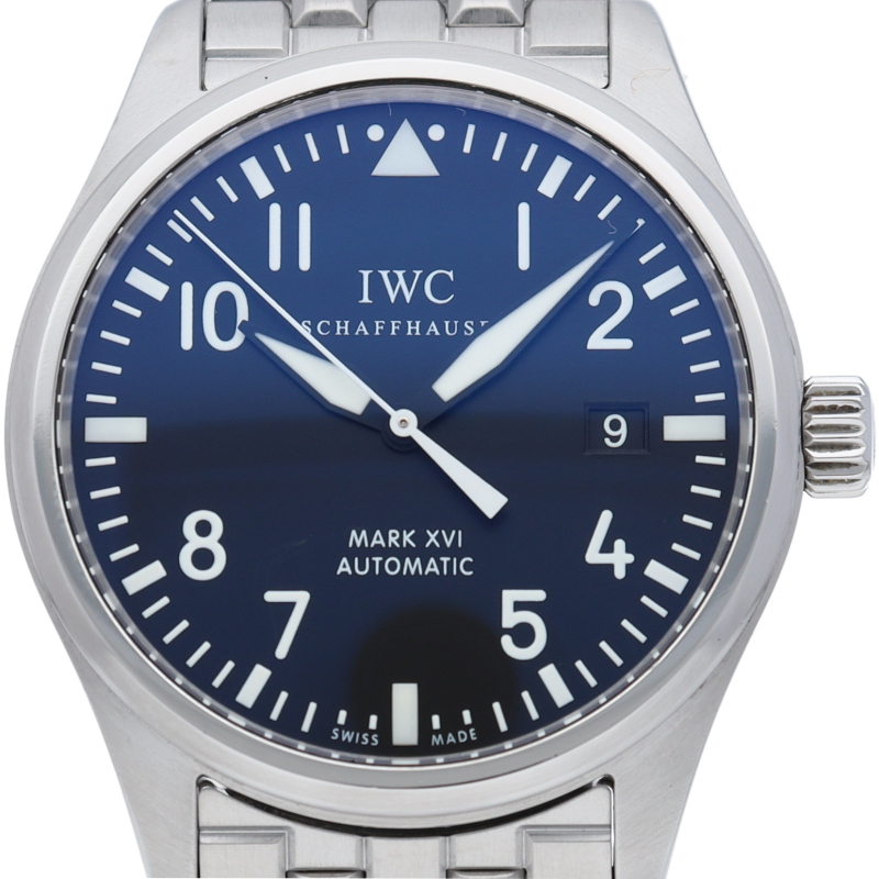 1930年代のマークIVから連なるミリタリーウォッチの流れを現代に踏襲する「マーク16」。耐磁構造のケース等、パイロットウォッチシリーズならではの機能性はそのままに、サイズは現代風にボリュームアップされています。