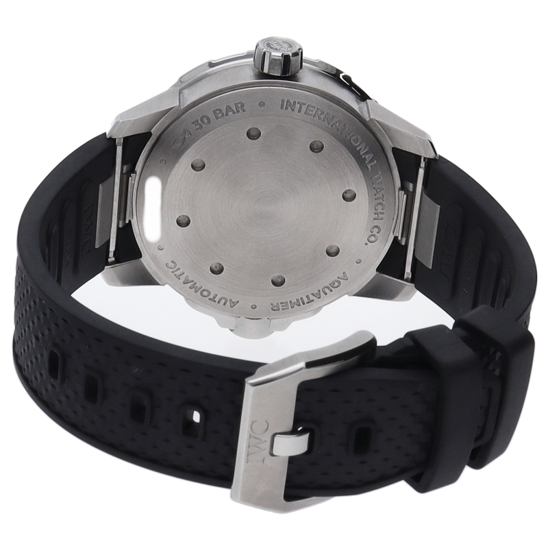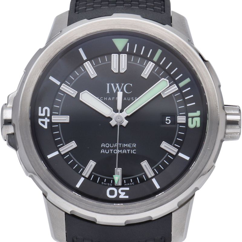 IWCを代表するダイバーズ・コレクションがアクアタイマーです。グリーンの夜光塗料が塗布された文字盤は歴代モデルと同様に優れた視認を確保。新機構となる、セーフダイブ・システムを備える回転式アウター/インナーベゼルを装備しています。ムーブメントには42時間のパワーリザーブを備える、自動巻きムーブメント30120を搭載。