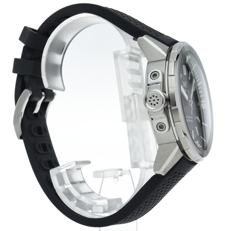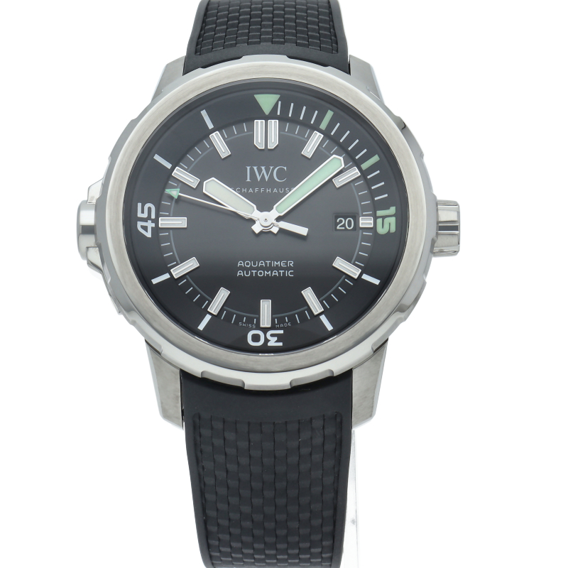 IWCを代表するダイバーズ・コレクションがアクアタイマーです。グリーンの夜光塗料が塗布された文字盤は歴代モデルと同様に優れた視認を確保。新機構となる、セーフダイブ・システムを備える回転式アウター/インナーベゼルを装備しています。ムーブメントには42時間のパワーリザーブを備える、自動巻きムーブメント30120を搭載。