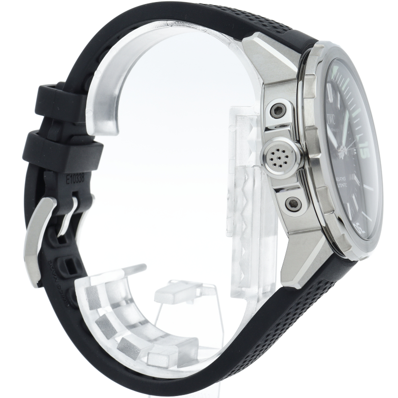 IWCを代表するダイバーズ・コレクションがアクアタイマーです。グリーンの夜光塗料が塗布された文字盤は歴代モデルと同様に優れた視認を確保。新機構となる、セーフダイブ・システムを備える回転式アウター/インナーベゼルを装備しています。ムーブメントには42時間のパワーリザーブを備える、自動巻きムーブメント30120を搭載。
