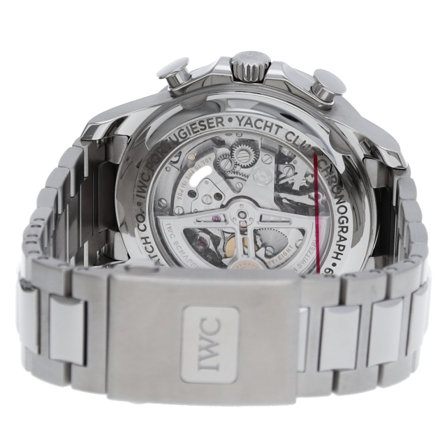 ポルトギーゼシリーズにおけるスポーツモデルの「ポルトギーゼ・ヨットクラブ・クロノグラフ」。シースルーバック仕様の44.6mmケースには、フライバック機能付き、68時間パワーリザーブの自社製クロノグラフムーブメントのキャリバー89361を搭載しています。