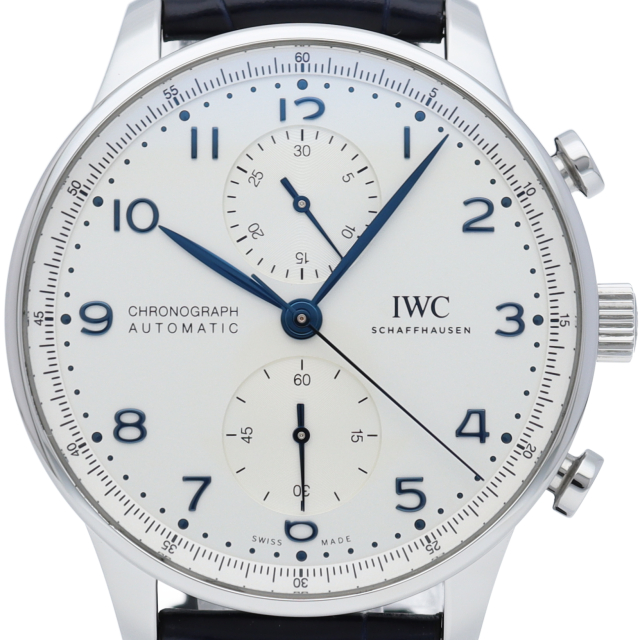 IWCの中でも特に人気の「ポルトギーゼ」。ケースいっぱいまで広げられたダイヤルにより、41mmのケース径よりも大き目に見えるデザインが特徴です。