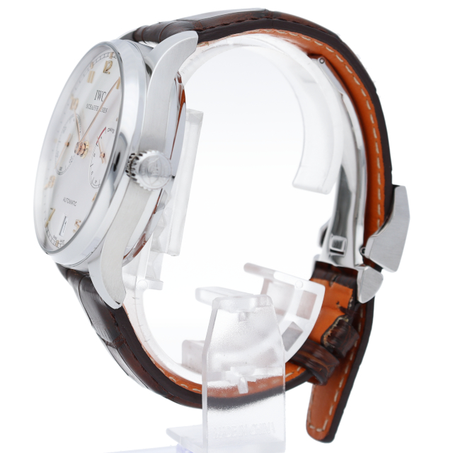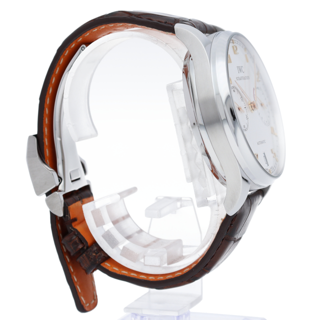 懐中時計をルーツとした大型ムーブメント搭載のコレクションの「ポルトギーゼ」。7日間パワーリザーブを備えたペラトン自動巻き機構のムーブメントは51011を搭載しています。