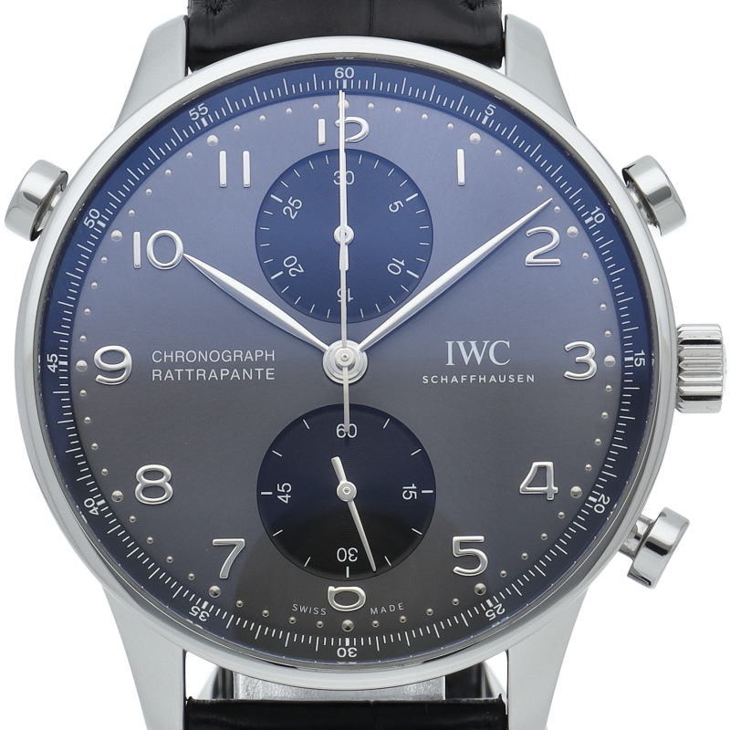 「ポルトギーゼ」はその洗練されたデザインでIWCの中でも人気の高いモデルの一つとなっています。クロノグラフ機能を備えていますが、このモデルはスプリットセコンド針を利用したラトラパンテ機構が内蔵されており、同時に2つのタイムを計測することが可能です。