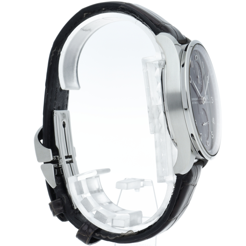 IWCの中でも特に人気の「ポルトギーゼ」。ケースいっぱいまで広げられたダイヤルにより、41mmのケース径よりも大き目に見えるデザインが特徴です。