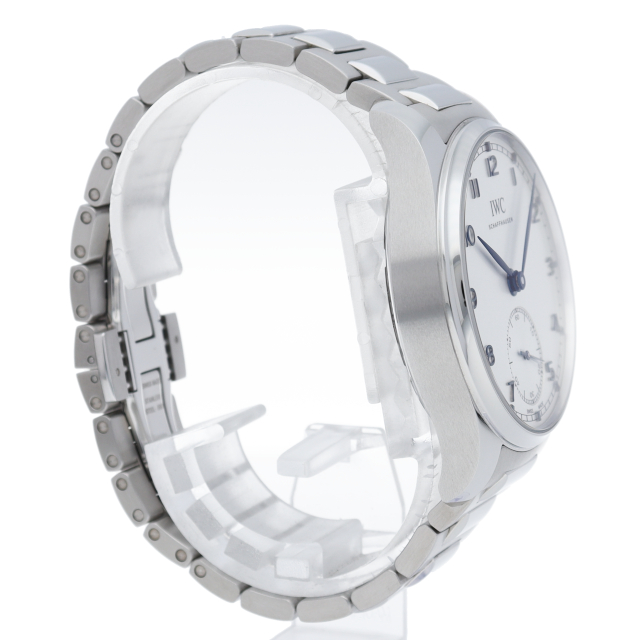 1930年代にポルトガル商人がオーダーメイドした時計を原形として製造が開始されたポルトギーゼ。こちらは、自社製ペラトン式ムーブメントCal.82200を搭載、ブレスレット仕様となった2021年発表モデルです。リーフハンドやレイルウェイなどのクラシカルなデザインと、IWCの高い機能を併せ持ったドレスウォッチです。パワーリザーブ約60時間。