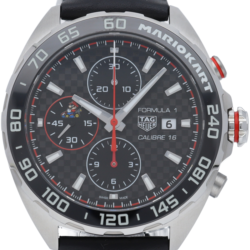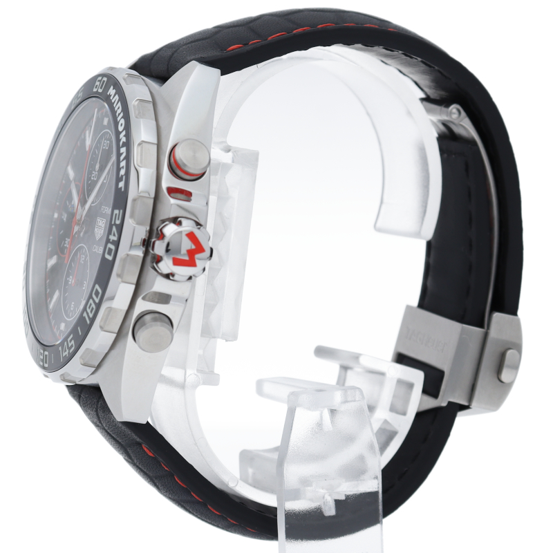 タグ・ホイヤーが世界で最も有名なレーサーとコラボレーションして生まれた、世界限定3000本のクロノグラフウォッチ。マリオの特別なディテールを盛り込み、世界中で知られるレーシングゲームシリーズにちなんだ、自社製ムーブメント キャリバー16搭載、ケース径44mmのクロノグラフです。