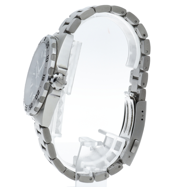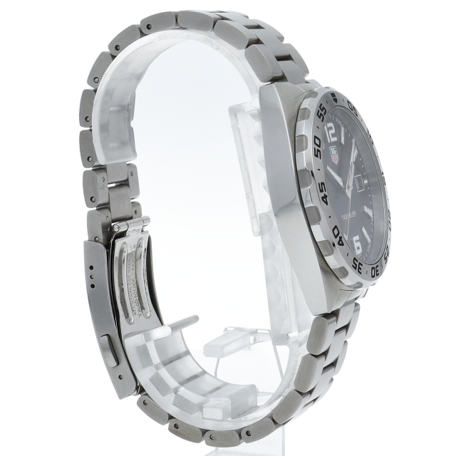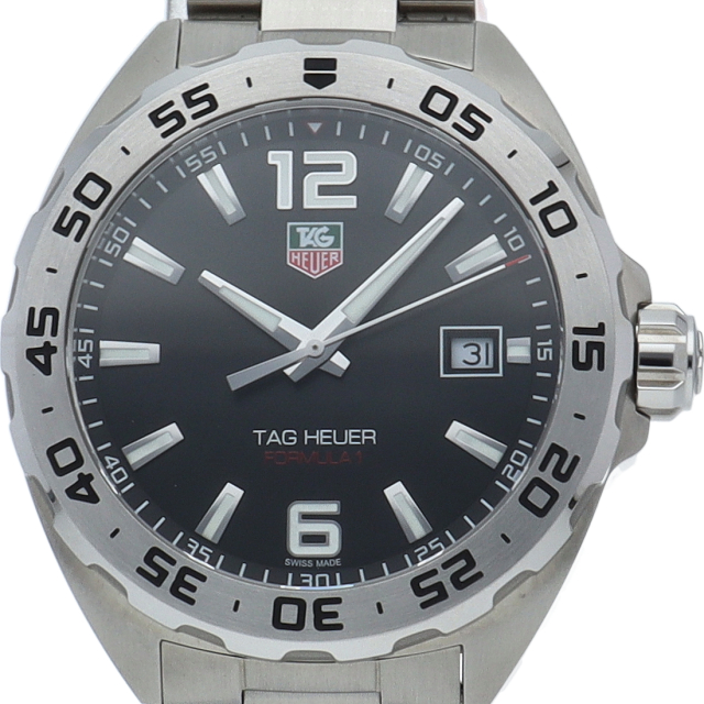 タグ・ホイヤーの人気シリーズ「フォーミュラ1」。レッドチップのアクセント付きスモールセコンド針に、タグ・ホイヤーを象徴するホワイト、レッド、グリーン配色のロゴが、文字盤を読みやすく、大胆なデザインに仕上げています。