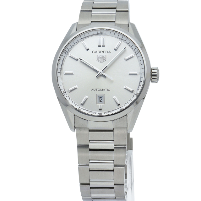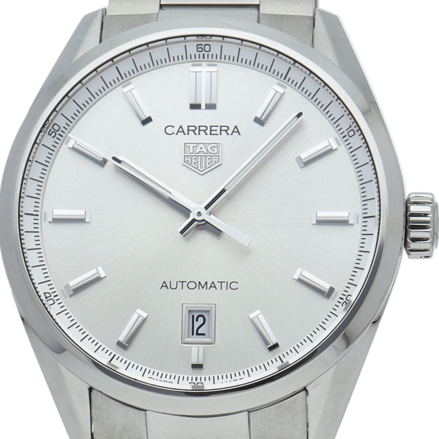 あらゆる状況に対応する、タグ・ホイヤー カレラ。高級感あふれるシルバーサンレイサテン仕上げのダイヤルには、機能的でエレガントなロジウム加工のタグ・ホイヤー ロゴ、そしてスーパールミノバRが塗布された針とインデックスが映えます。