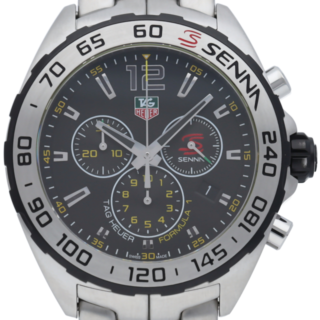 2015年 タグホイヤーはアイルトンセナをアンバサダーとして復活させ、フォーミュラ1クロノグラフとカレラクロノグラフにアイルトンセナエディションを発表しました。クォーツムーブメントを搭載し、文字盤にはセナの頭文字である“S”があしらわれています。