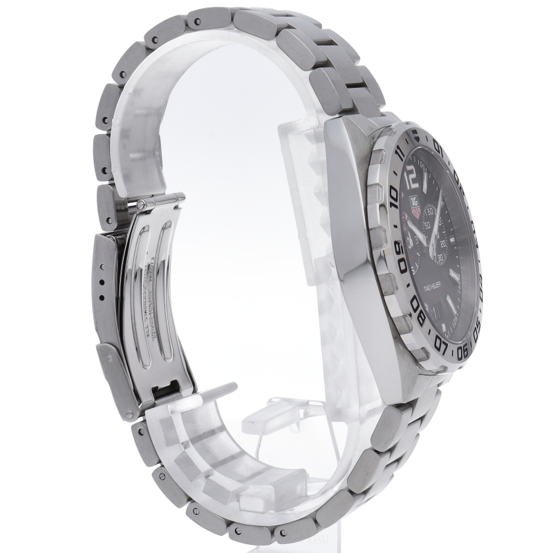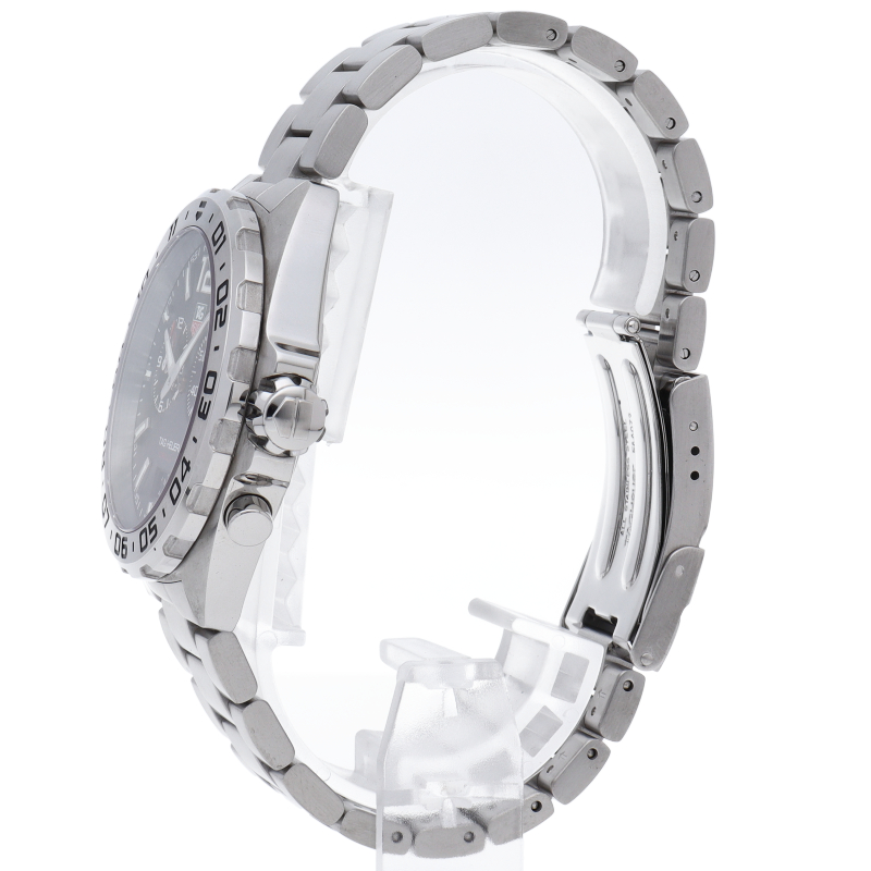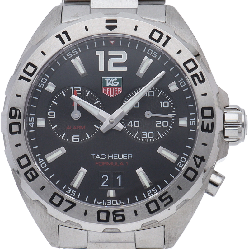 F1をイメージして作られたタグ・ホイヤーの「フォーミュラ1」。蓄積してきた計時技術と専門性を備える、頑丈なスポーツアラームウォッチとなっております。200mの防水機能、12時間スケールの回転式ベゼル、3時位置に永久秒表示、9時位置に高機能アラームのサブダイヤルを備えています。