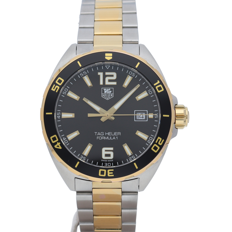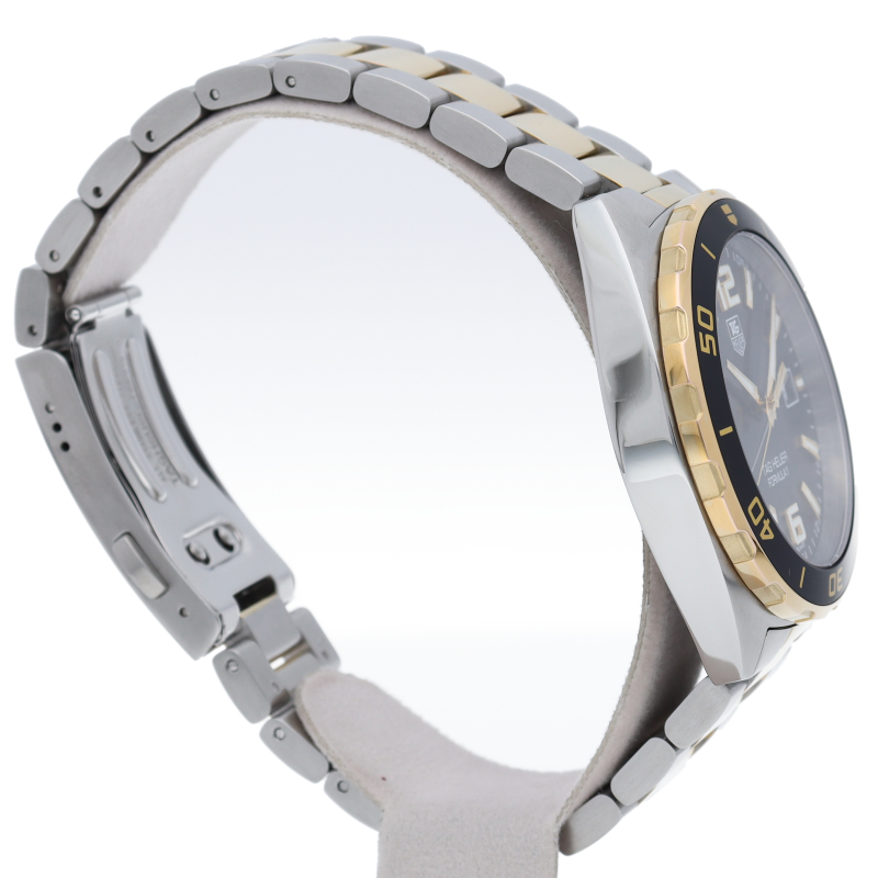 F1の最先端テクノロジーにインスピレーションを得た「フォーミュラ1」シリーズ。シンプルで直線的なF1シリーズ特有のスタイルを継承しながら、ベゼルやケースはステンレスとイエローゴールドのコンビにすることで、高級感も併せ持っています。