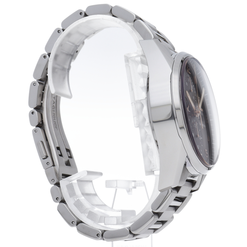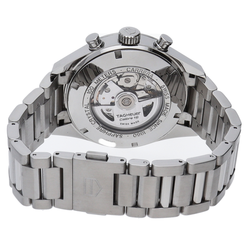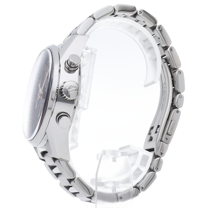 カレラクロノグラフタキメーターのケースと文字盤をベースに曜日表示を加え、重厚なブレスをもって新たに登場。また、風防には両面反射防止コーティングが施され、更に文字盤の視認性が良くなっています。