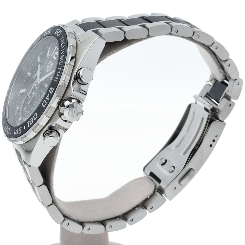 タグホイヤーの人気モデル「フォーミュラーワン」のセラミック採用モデルです。セラミックの質感がスポーティーな印象を与えます。