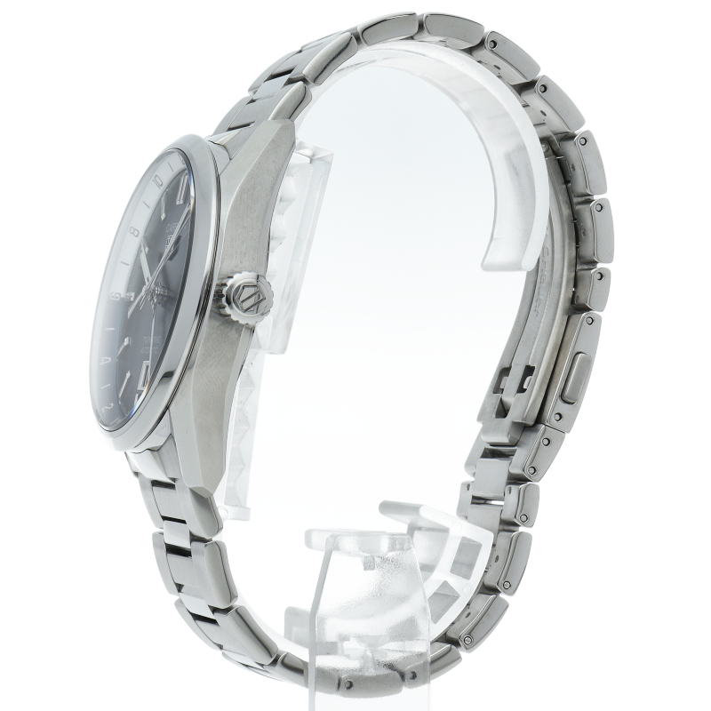 キャリバー7ツインタイムを搭載したこのモデルは、ダイヤル外縁の24時間計と先端の赤いGMT針でセカンドタイムゾーンを表示し、ケースバックからムーブメントの精緻な意匠が鑑賞できるのも魅力です。