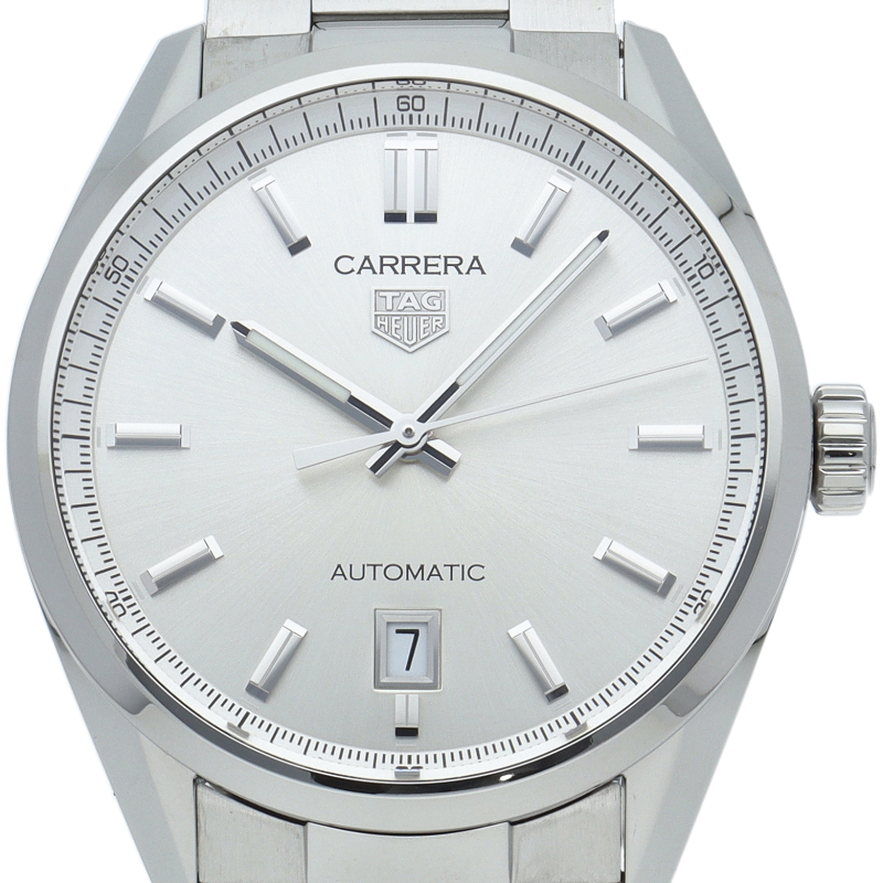 あらゆる状況に対応する、タグ・ホイヤー カレラ。高級感あふれるシルバーサンレイサテン仕上げのダイヤルには、機能的でエレガントなロジウム加工のタグ・ホイヤー ロゴ、そしてスーパールミノバRが塗布された針とインデックスが映えます。