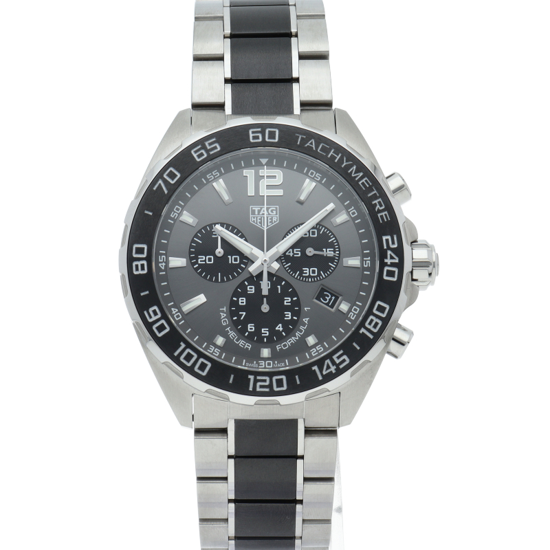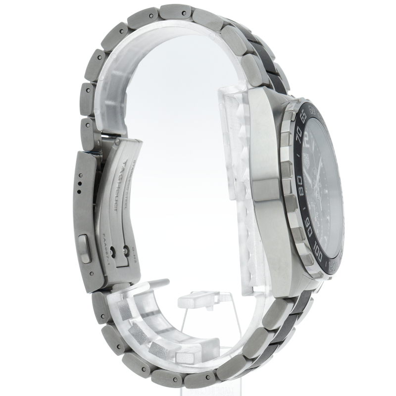 タグホイヤーの人気モデル「フォーミュラーワン」のセラミック採用モデルです。セラミックの質感がスポーティーな印象を与えます。