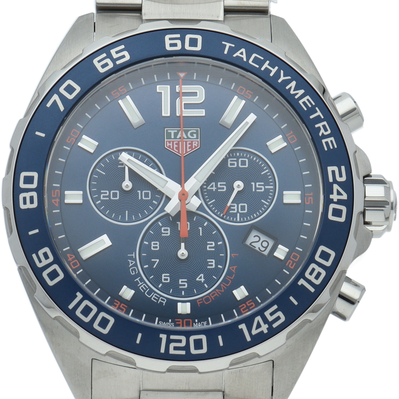 タグ・ホイヤーの人気シリーズ「フォーミュラ1」。スポーティーでスタイリッシュなデザインで存在感のある1本です。クロノグラフ機能付。