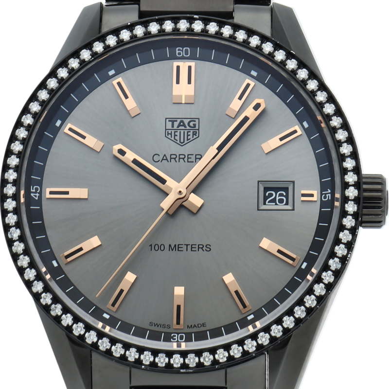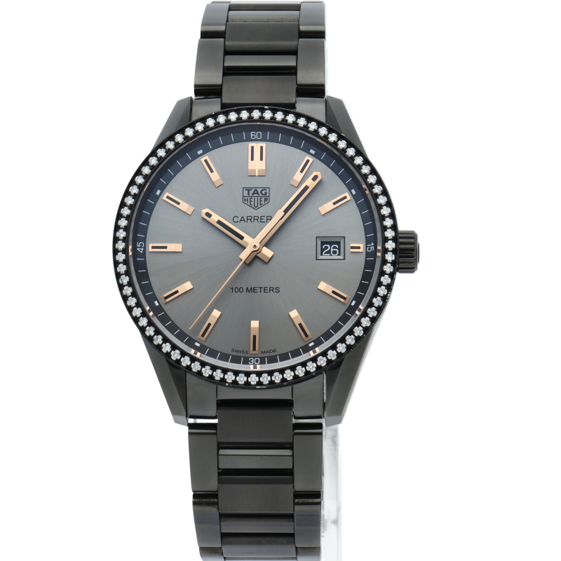 クォーツムーブメントを搭載したレディースモデルのカレラ。ステンレスケースにブラックのPVDコーティングを施した、レディースモデルでは珍しいクールな印象です。カレラの2017年発表モデル。