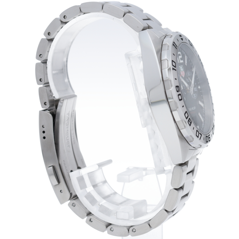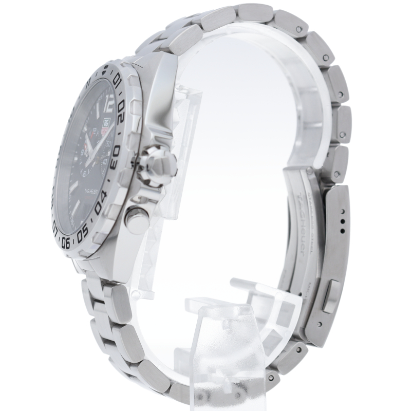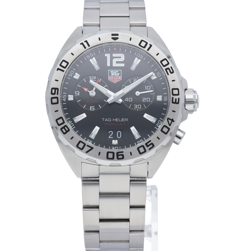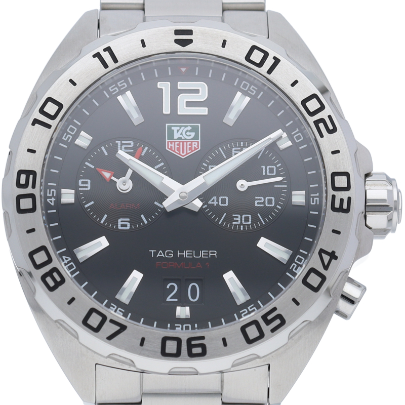 モーターレース最高峰「フォーミュラ1」にインスピレーションを得てデザインされているウォッチコレクション「F1」シリーズ。手首周りにしっくりとなじむ径41mmサイズのケースに信頼性の高いクォーツ式ムーブメントを搭載。9時位置にアラームのインダイヤルが配置されており、タグホイヤーらしいスポーティーな印象を与えるレーシングスピリット溢れるモデルです。