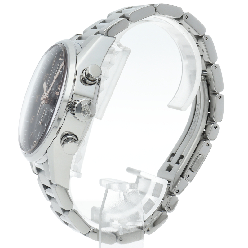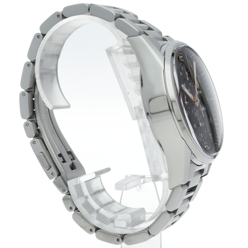 カレラクロノグラフタキメーターのケースと文字盤をベースに曜日表示を加え、重厚なブレスをもって新たに登場。また、風防には両面反射防止コーティングが施され、更に文字盤の視認性が良くなっています。