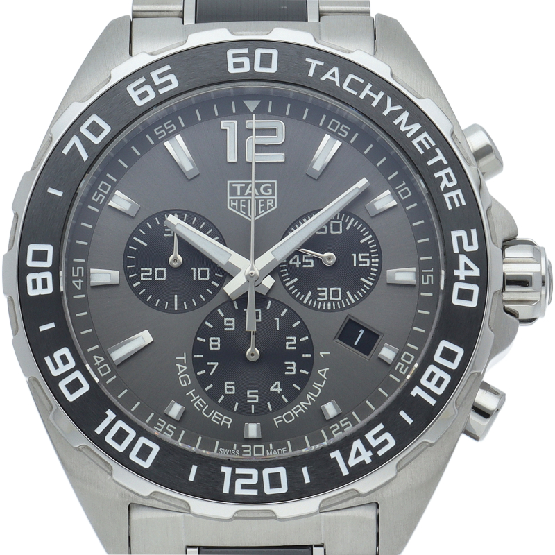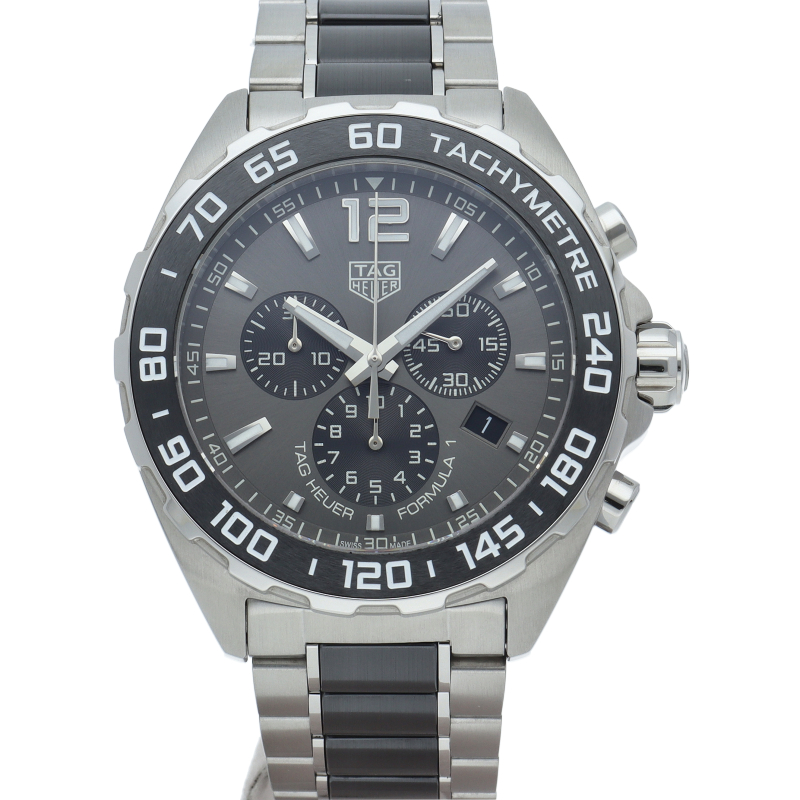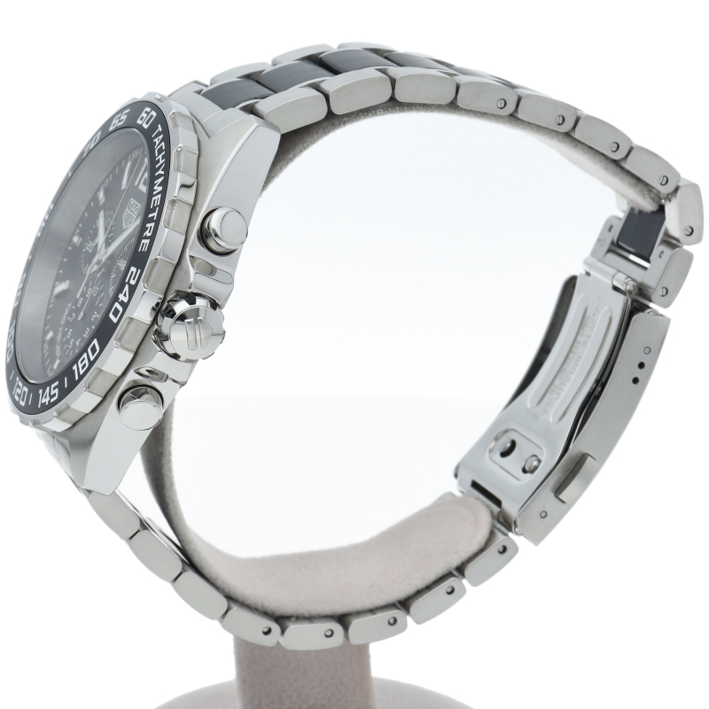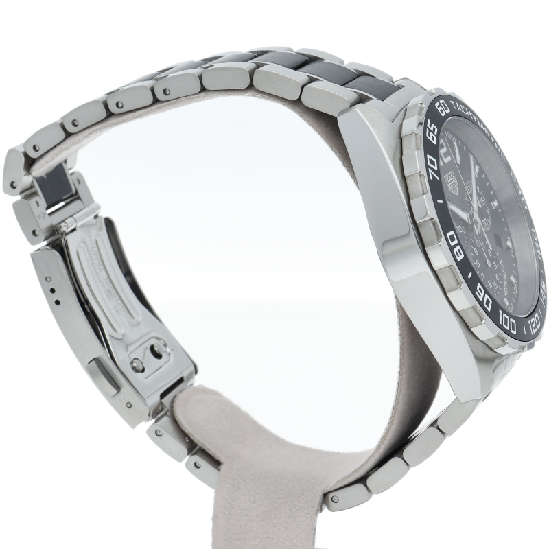 タグホイヤーの人気モデル「フォーミュラーワン」のセラミック採用モデルです。セラミックの質感がスポーティーな印象を与えます。