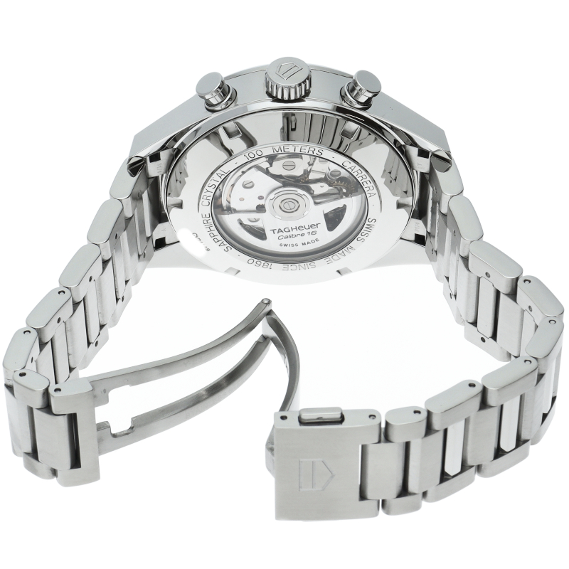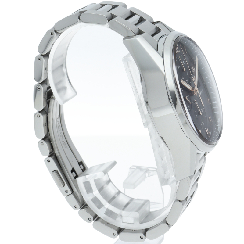 カレラクロノグラフタキメーターのケースと文字盤をベースに曜日表示を加え、重厚なブレスをもって新たに登場。また、風防には両面反射防止コーティングが施され、更に文字盤の視認性が良くなっています。