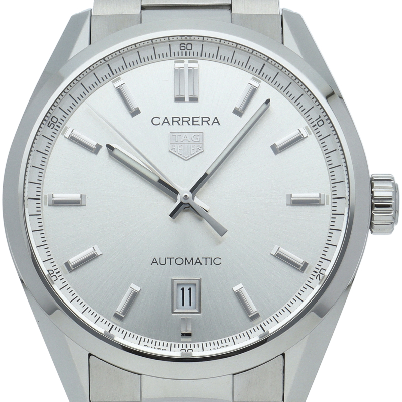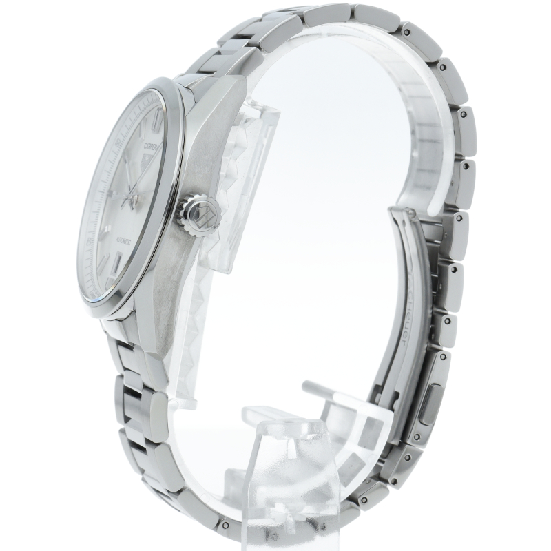あらゆる状況に対応する、タグ・ホイヤー カレラ。高級感あふれるシルバーサンレイサテン仕上げのダイヤルには、機能的でエレガントなロジウム加工のタグ・ホイヤー ロゴ、そしてスーパールミノバRが塗布された針とインデックスが映えます。