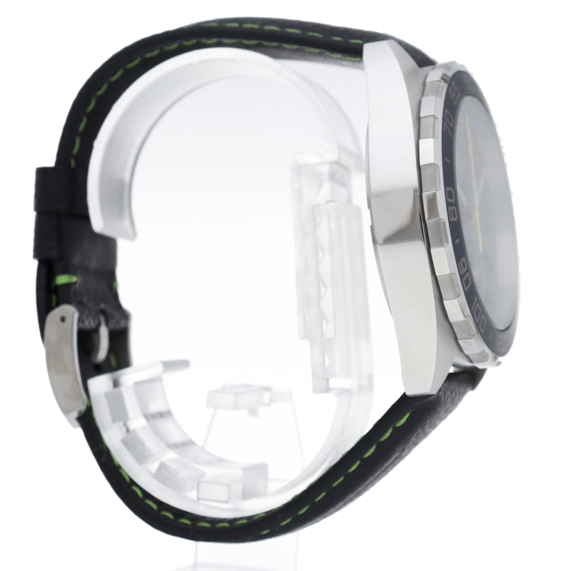 タグ・ホイヤーとFIA世界耐久選手権のパートナーシップにインスピレーションを得て誕生した、タグ・ホイヤー フォーミュラ1 アストンマーティン クロノグラフ。クォーツ・ムーブメントを搭載したクロノグラフは、グレー&マットブラックのアルミ製タキメータースケール付きの固定式セラミック製ベゼルを備えています。