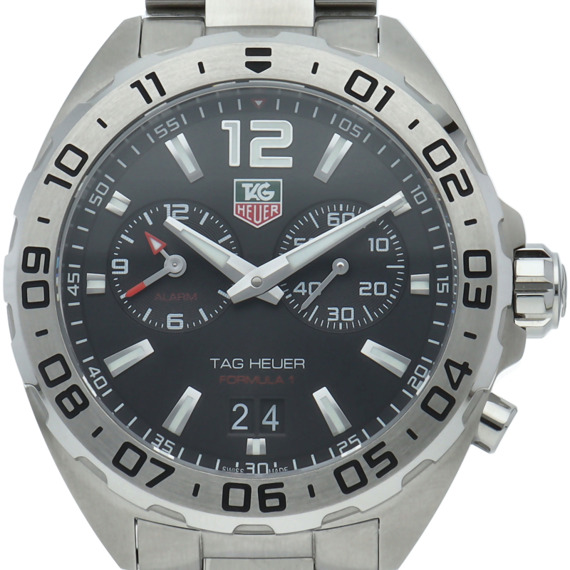 モーターレース最高峰「フォーミュラ1」にインスピレーションを得てデザインされているウォッチコレクション「F1」シリーズ。手首周りにしっくりとなじむ径41mmサイズのケースに信頼性の高いクォーツ式ムーブメントを搭載。9時位置にアラームのインダイヤルが配置されており、タグホイヤーらしいスポーティーな印象を与えるレーシングスピリット溢れるモデルです。
