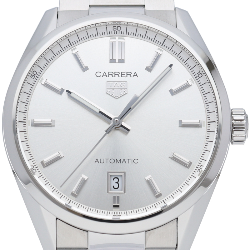 あらゆる状況に対応する、タグ・ホイヤー カレラ。高級感あふれるシルバーサンレイサテン仕上げのダイヤルには、機能的でエレガントなロジウム加工のタグ・ホイヤー ロゴ、そしてスーパールミノバRが塗布された針とインデックスが映えます。