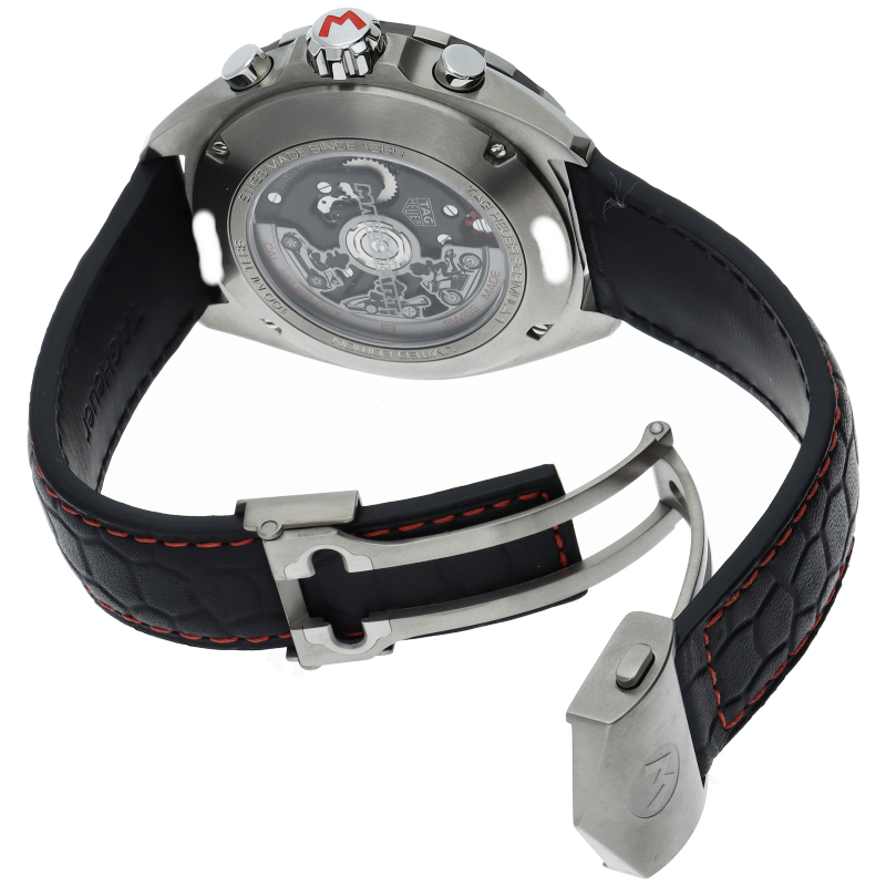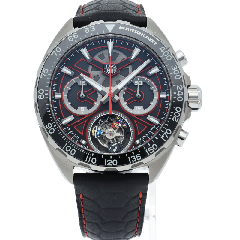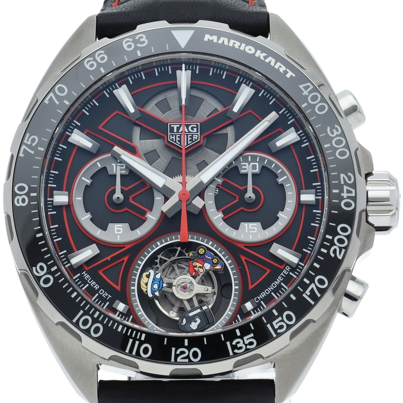 タグ・ホイヤーが世界で最も有名なレーサーとコラボレーションして生まれた、世界限定250本のトゥールビヨンクロノグラフウォッチ。マリオの特別なディテールを盛り込み、世界中で知られるレーシングゲームシリーズにちなんだ、自社製ムーブメント キャリバー02T搭載でクロノグラフ×トゥールビヨンにパワーリザーブ約80時間と機能性も十二分です。