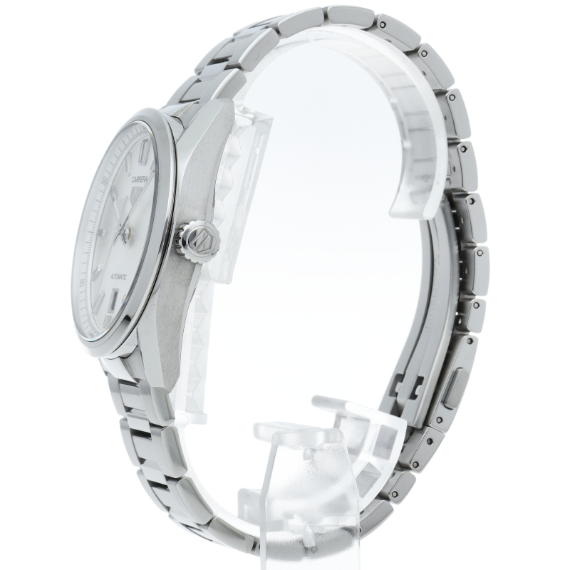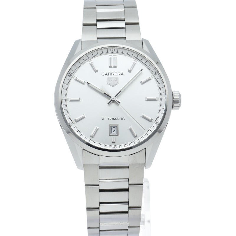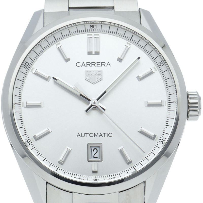 あらゆる状況に対応する、タグ・ホイヤー カレラ。高級感あふれるシルバーサンレイサテン仕上げのダイヤルには、機能的でエレガントなロジウム加工のタグ・ホイヤー ロゴ、そしてスーパールミノバRが塗布された針とインデックスが映えます。