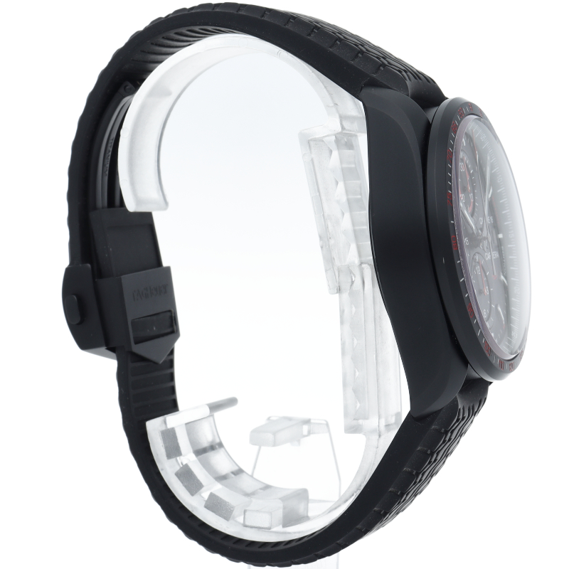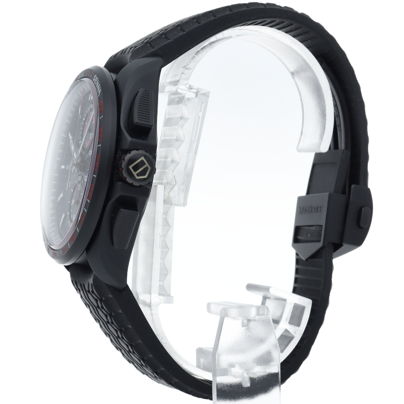 スイス製のこの大胆なタグ・ホイヤー カレラは、デザイン性を備えた44mmウォッチです。 このモデルはチタン ブラックPVD製ケースを採用し、キャリバー16自動巻ムーブメントを搭載しています。