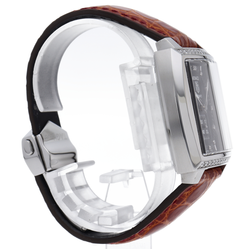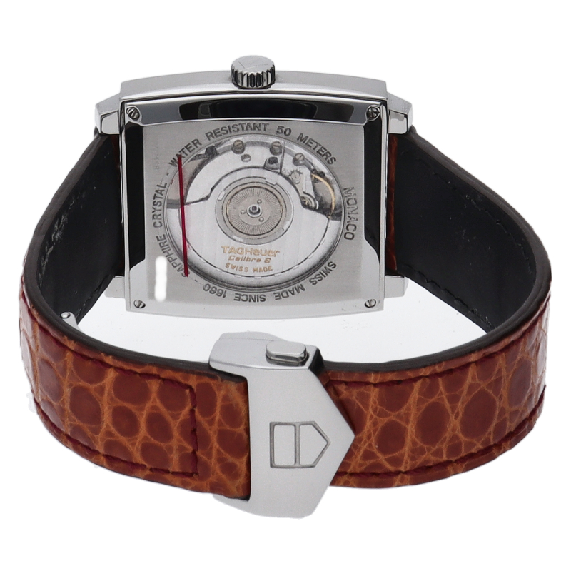 世界初の角型防水ケース時計を搭載したタグ・ホイヤーを代表するクラシックモデル、モナコ。モナコにはじめてサファイヤクリスタルの風防が搭載されたモデルです。6時位置にはスクエア形状のスモールセコンドを備えております。ケースバックからはタグホイヤー製 キャリバー6の作動する様子が見られます。