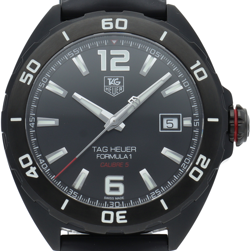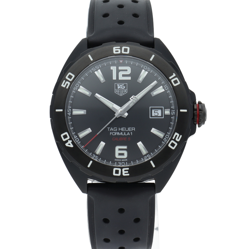 タグ・ホイヤーの人気シリーズ「フォーミュラー1」。スティールブラックPVD製ケースを採用し、キャリバー5自動巻ムーブメントを搭載。スポーティーでスタイリッシュな存在感のある1本です。