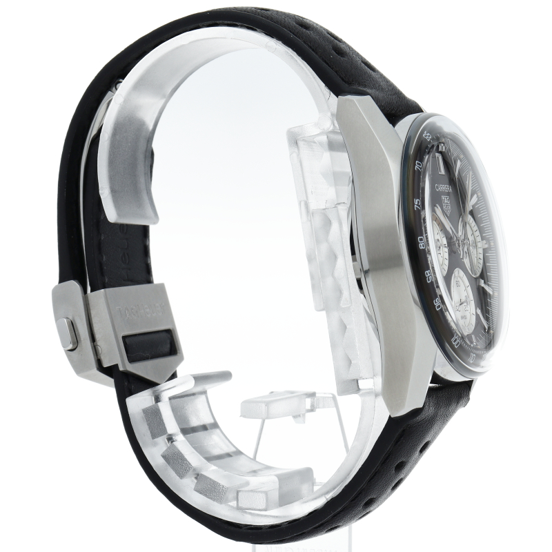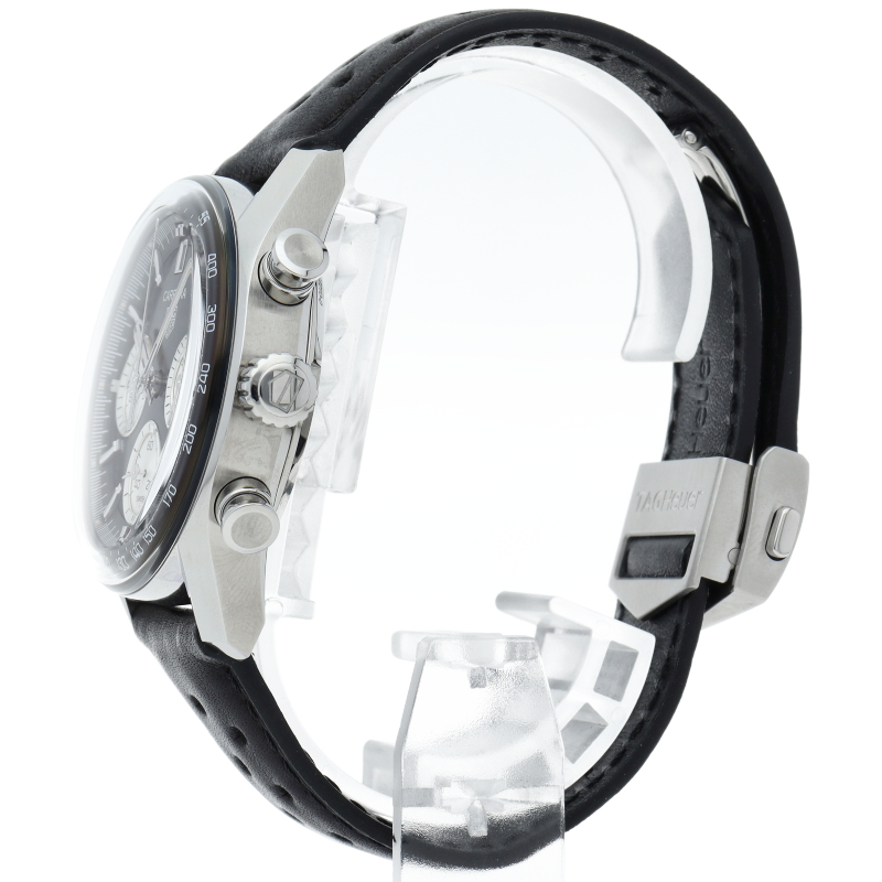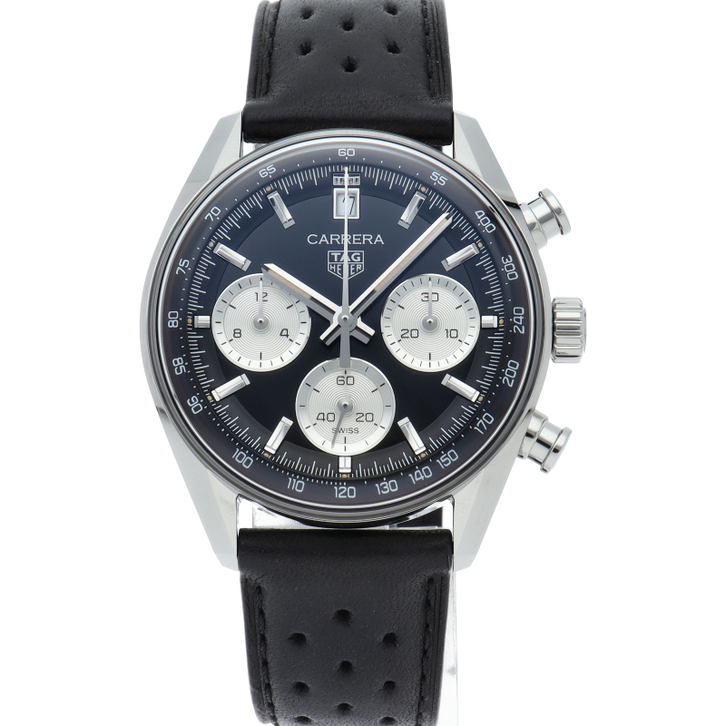 タグホイヤーが誇る大人気クロノグラフ「カレラ クロノグラフ」。逆パンダ ダイヤルをもつ2447NSモデルをベースにした、タグ・ホイヤー グラスボックスのプレステージなブラックの39mmモデル。カレラのシグネチャーデザインにモダンなひねりを加えています。ラグジュアリーなパンチング加工を施したカーフスキンストラップを合わせた、大胆に生きる人のためのウォッチです。