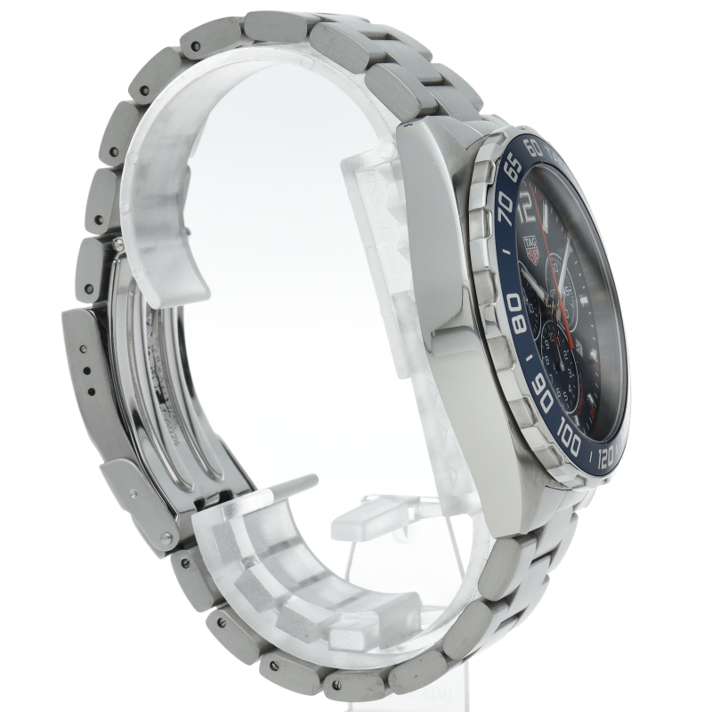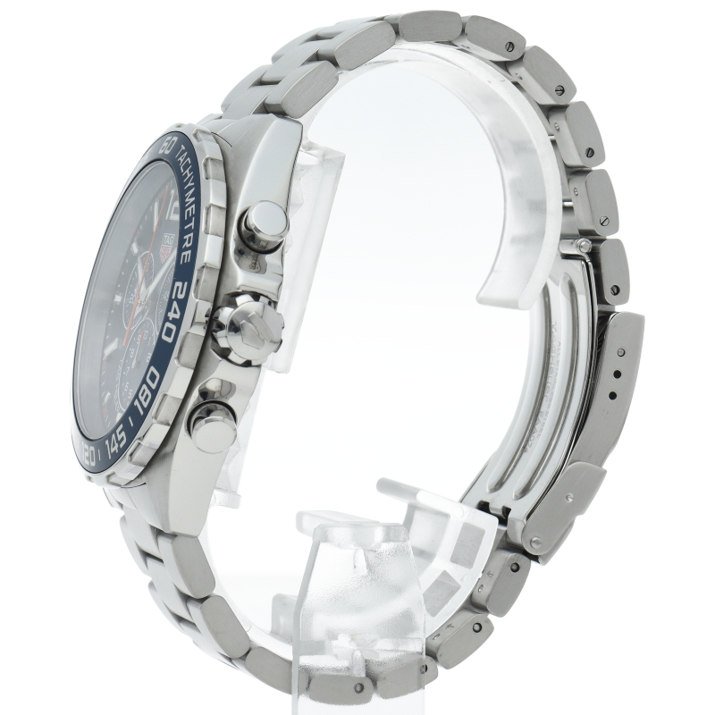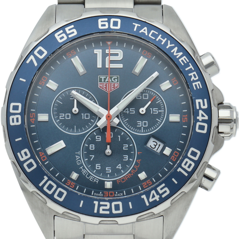 タグ・ホイヤーの人気シリーズ「フォーミュラ1」。スポーティーでスタイリッシュなデザインで存在感のある1本です。クロノグラフ機能付。