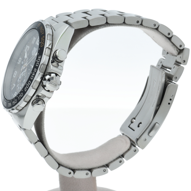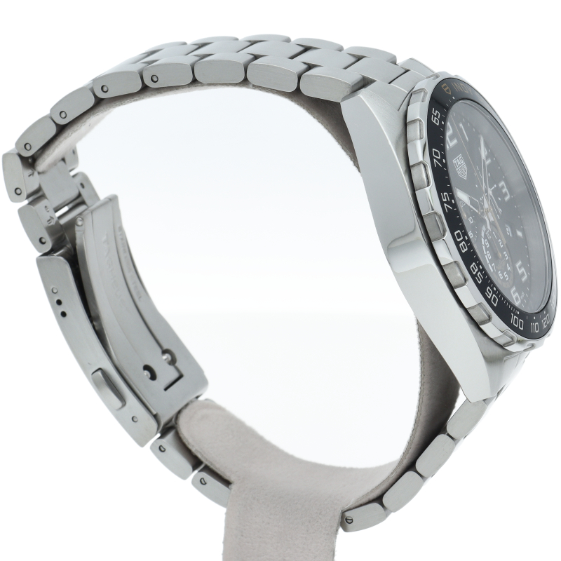タグ・ホイヤーの人気シリーズ「フォーミュラ1」。スポーティーでスタイリッシュなデザインで存在感のある1本です。クロノグラフ機能付。インディ500を思わせるデザインをいくつも取り入れた、先を行くためのスポーツウォッチです。