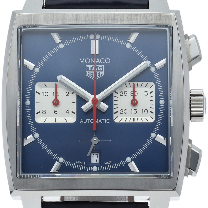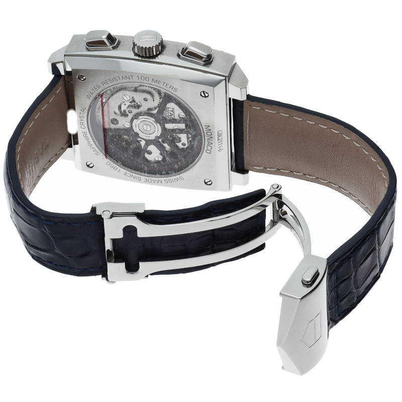 最初に誕生したモナコには、自社製ムーブメント、ホイヤー02が搭載されていました。 オリジナルのモナコのブルーのスクエアケースを踏襲した、ビンテージ性の高いタイムレスなデザインで、80時間のパワーリザーブを備えています。