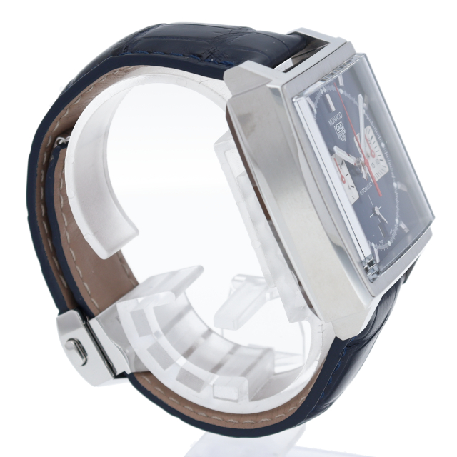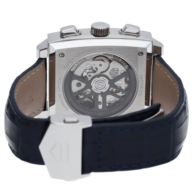 最初に誕生したモナコには、自社製ムーブメント、ホイヤー02が搭載されていました。 オリジナルのモナコのブルーのスクエアケースを踏襲した、ビンテージ性の高いタイムレスなデザインで、80時間のパワーリザーブを備えています。