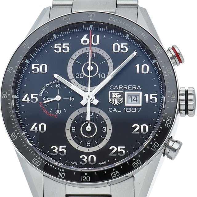 タグホイヤーの人気シリーズ「カレラ」。キャリバー1887を搭載、セラミック製タキメーターベゼルやH型のブレスレットなど、格部は改良を加えられ、一段と使いやすくなっています。
