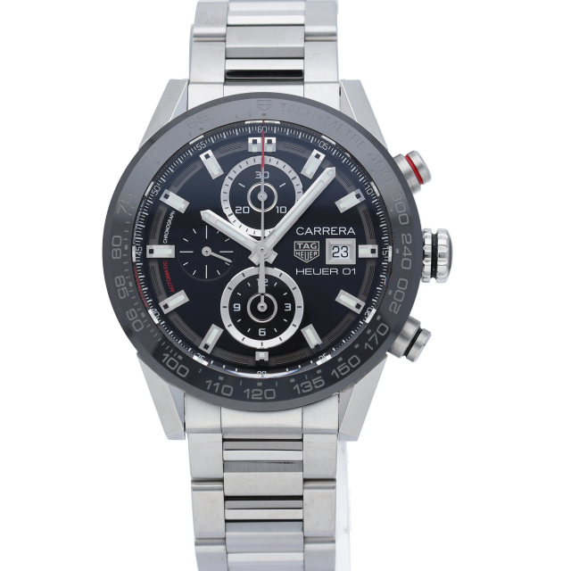 タグ・ホイヤーのスポーツコレクションの基幹モデルがこちらのカレラ キャリバー ホイヤー01クロノグラフです。大型ステンレススチールケースはポリッシュ/サテン仕上げが施され、堂々とした43ミリのケースサイズとなります。