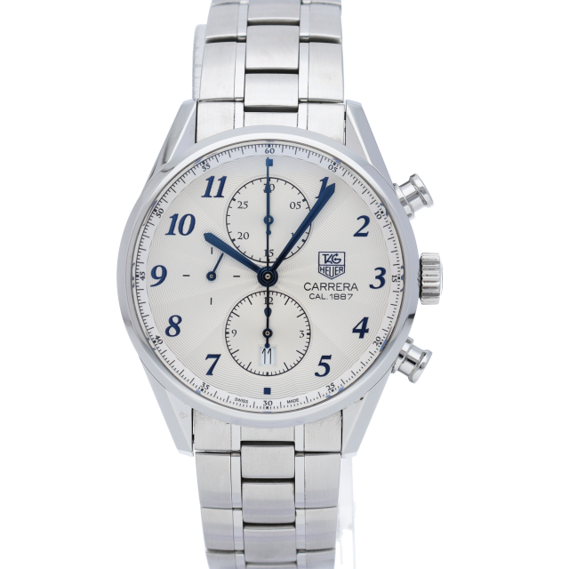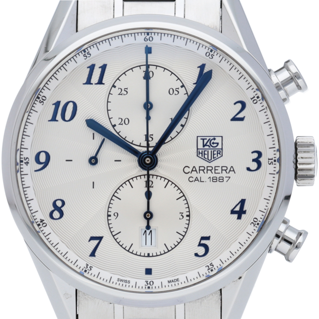 タグ・ホイヤーの中でスポーティとエレガンスを融合したコレクションが「カレラ」です。その中でも「カレラ1887」は特別なモデルとなります。自社開発した「キャリバー1887」は巻き上げ効率が格段に向上した改良型を搭載。立体型のインダイヤルはカレラ1887の象徴といえるでしょう。ダイヤル外周にはタキメーターが備わり、スポーティな雰囲気を演出してくれます。