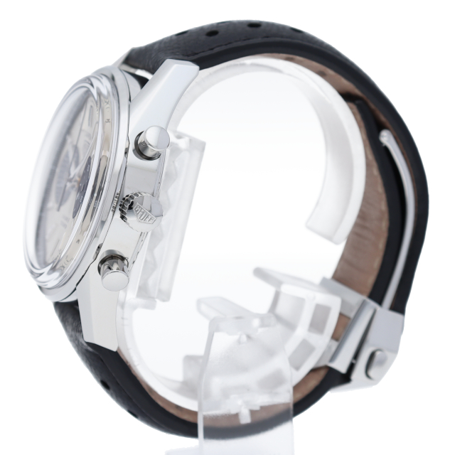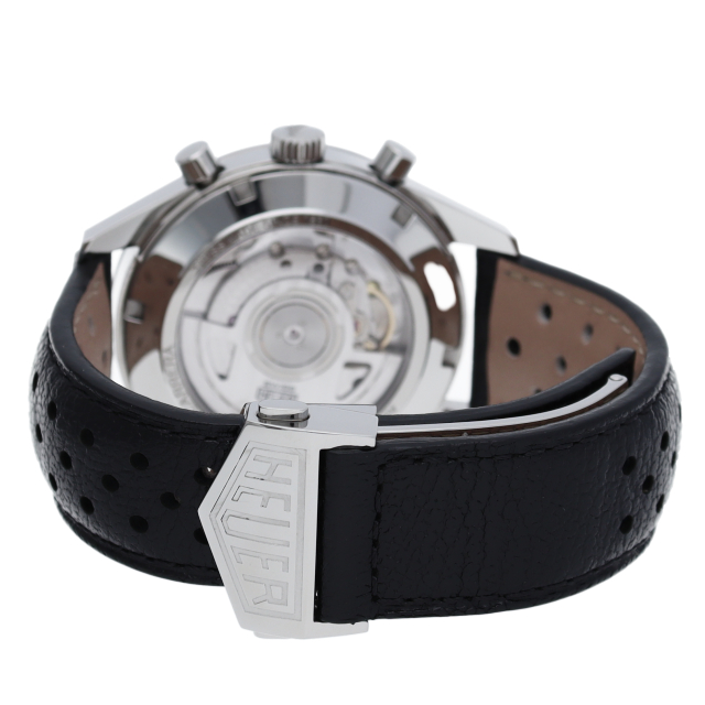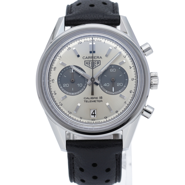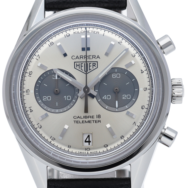 ヴィンテージのホイヤーロゴが印象的なモデル。落ち着いたモノトーンダイアルで、安定感のある二つ目クロノグラフです。腕馴染みの良い39mmケースにキャリバー18を搭載。パワーリザーブは40時間に対応。ダイアル外周にはタキメーターではなく、テレメーターインデックスを備えています。傷のつきにくい「グラスボックス」サファイヤクリスタルが採用されています。