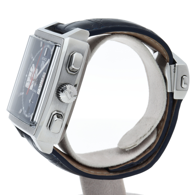 最初に誕生したモナコには、自社製ムーブメント、ホイヤー02が搭載されていました。 オリジナルのモナコのブルーのスクエアケースを踏襲した、ビンテージ性の高いタイムレスなデザインで、80時間のパワーリザーブを備えています。